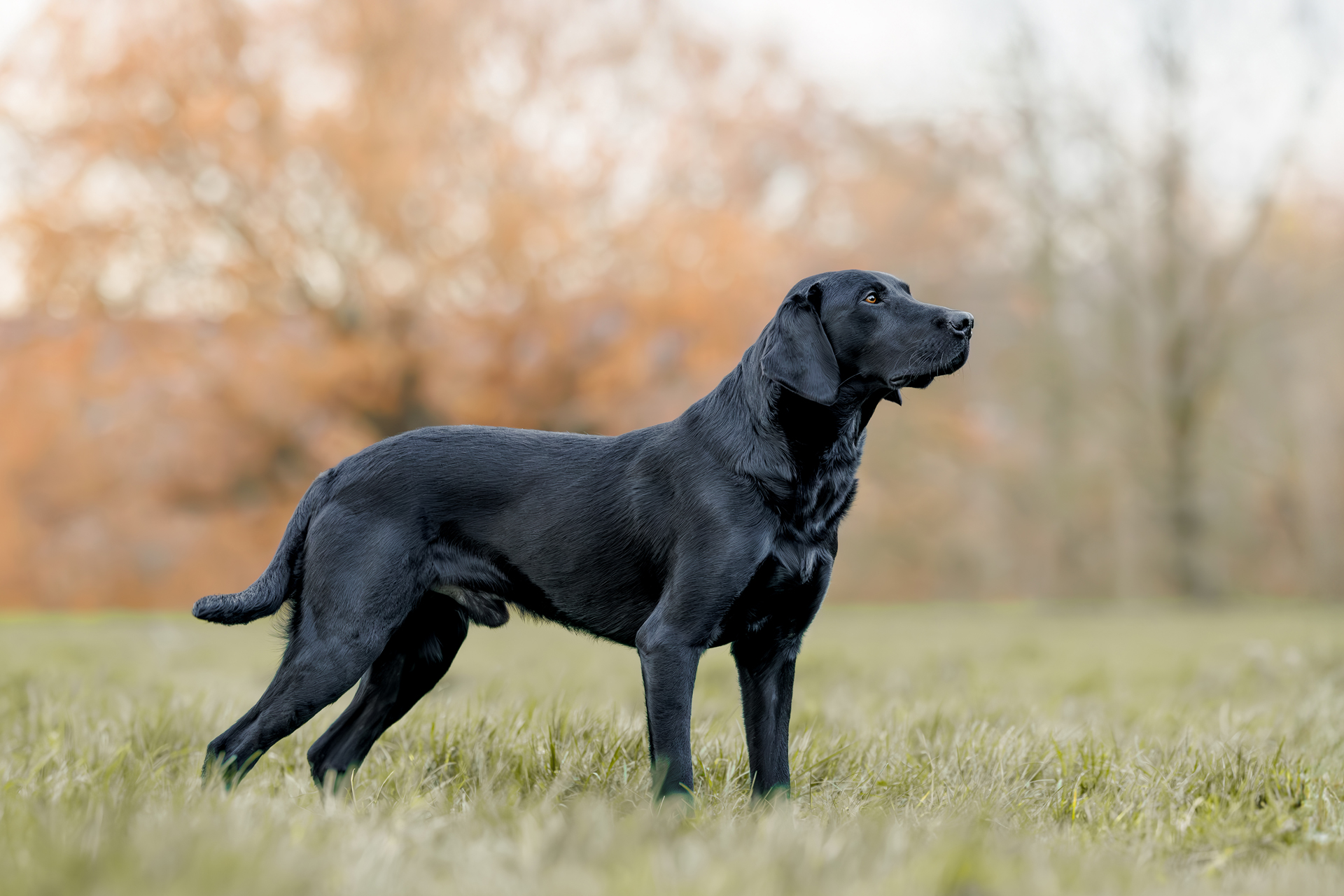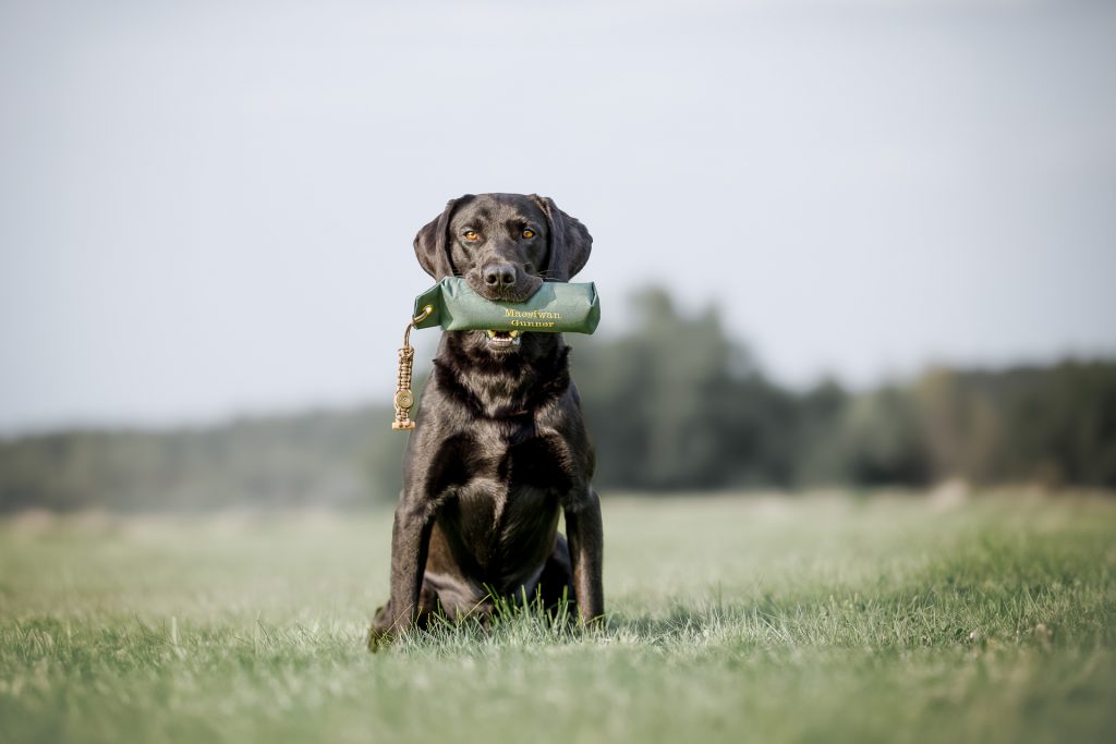 „Gun“ habe ich im Alter von 15 Monaten aus England importiert. Er hatte ein ansprechendes Pedigree, die Gesundheitsergebnisse stimmten, so dass ich mich auf den langen Weg nach Wales machte, um ihn anzuschauen. Mehrere Tage lang konnte ich mir dort ein Bild von ihm, seiner Mutter und einer noch vorhandenen Schwester machen. Gun war komplett untrainiert. Als ich ihm das erste Mal ein Dummy hab suchen lassen, zeigte er einen beeindruckenden Style. Ich war begeistert. Das war auch gut so, denn eine Schönheit war er zu dem Zeitpunkt nicht. Ich konnte nicht ahnen, dass aus dem optisch nicht so ansprechenden jungen Hund binnen einen Jahres ein wunderschöner Rüde werden würde. Ganz entscheidend für seine Auswahl war aber sein freundliches Wesen. Ein durch und durch sicherer, aufgeschlossener, unerschrockener Hund, menschenbezogen und freundlich, neugierig und extrem lustig. Voller Vertrauen und gut gelaunt sprang er nach 3 gemeinsamen Tagen in Wales in mein Auto. Seitdem lebt er hier mit mir.